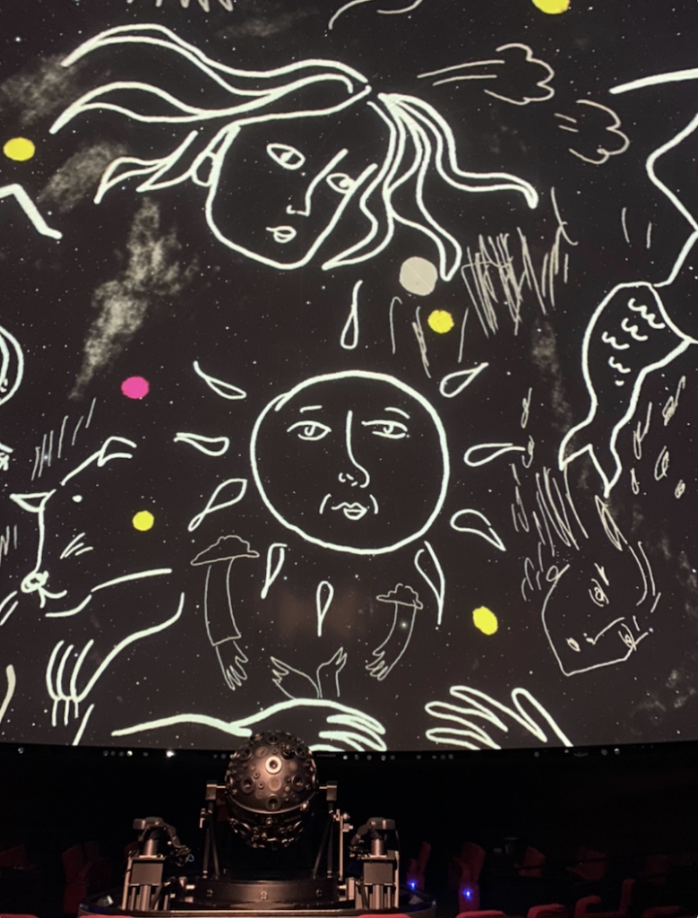 Ob ich denn auch großformatig malen würde und nicht immer nur kleinklein, fragen mich manche Leute. Jetzt kann ich sagen: Großformat? Überlebensgroßformat, das ist es. Das ganze Universum! So geschehen im Januar im Planetarium Hamburg, wo ich die Kuppel live und digital bezeichnet habe. Leider hier nur ein visueller Vorgeschmack, keine Profi Fotos….die kommen dann im Juli. Am 31. Juli mache ich es ein nächstes Mal, Link, Info & Tickets hier: https://www.planetarium-hamburg.de/de/veranstaltungen-tickets/details/smash-comedy-galactic-pride-edition