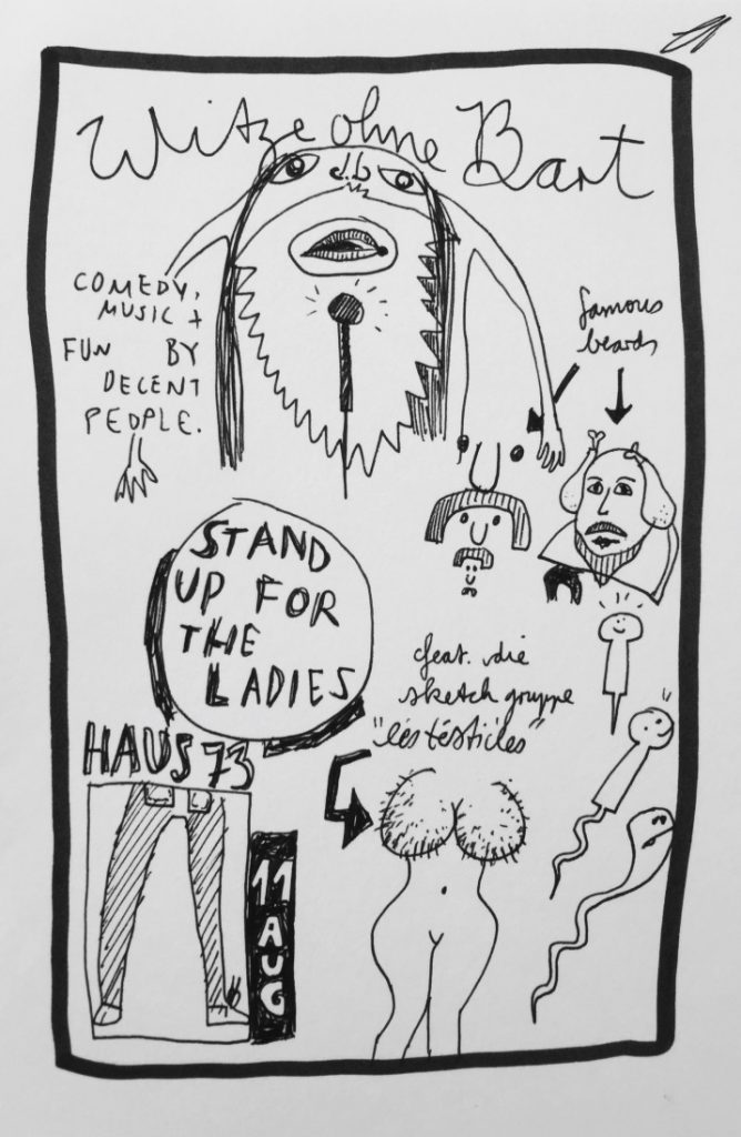 Das ist jetzt über zehn Jahre her. Mittlerweile hat sich die Szene geändert. Es gibt viel mehr weibliche Comedians. Es gibt explizit queer-freundliche Shows. Mittlerweile verändert Autocorrect “Komikerin” nicht mehr in “Kosmetikerin”. Ich glaube die letzte Show war 2019, weil ich dann nach Berlin zog. Es tut sich was! Aber es gibt immer noch die “All-Male-Line-ups”.