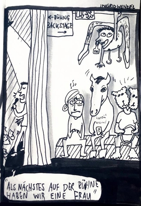 Es gibt viele Frauen, die hauptberuflich auf der Bühne stehen. Also: Bucht sie, gebt ihnen Geld, zeigt sie, supportet sie, findet sie, seid nicht lazy, werdet nicht defensiv, wenn wir über schlechte Erfahrungen in der Szene reden. Nicht nur eine buchen, sondern alle. Oder, Gegenvorschlag: Männer, lehnt Anfragen für Mixshows ab, wenn dort nur Männer auftreten.